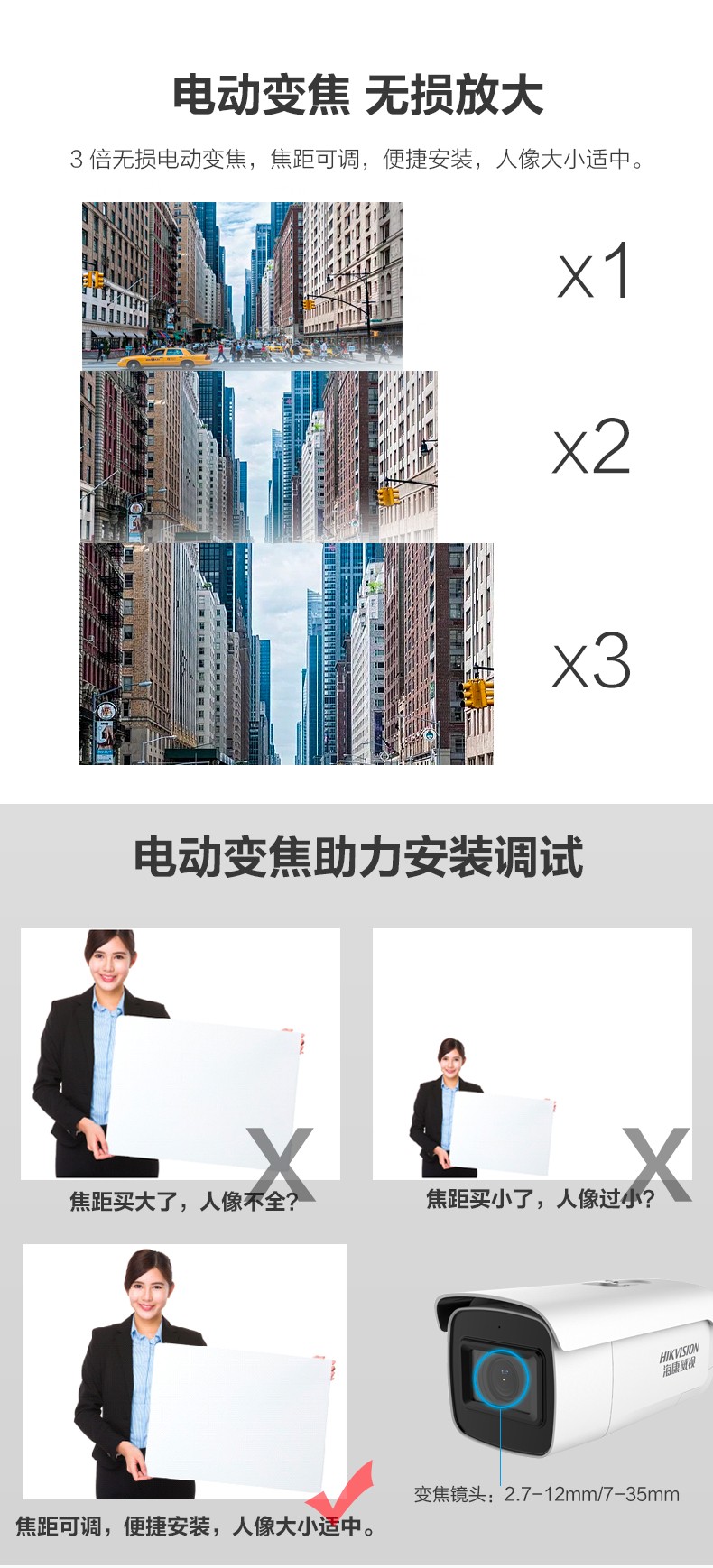 海康威视200/400万智能人脸抓拍识别室外poe高清变焦监控摄像头机